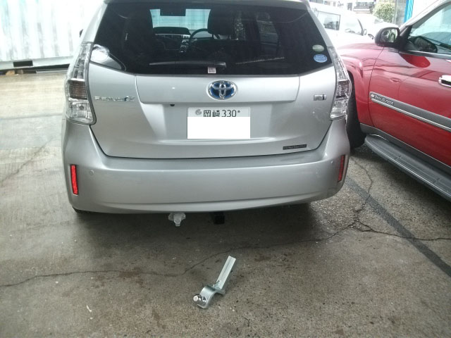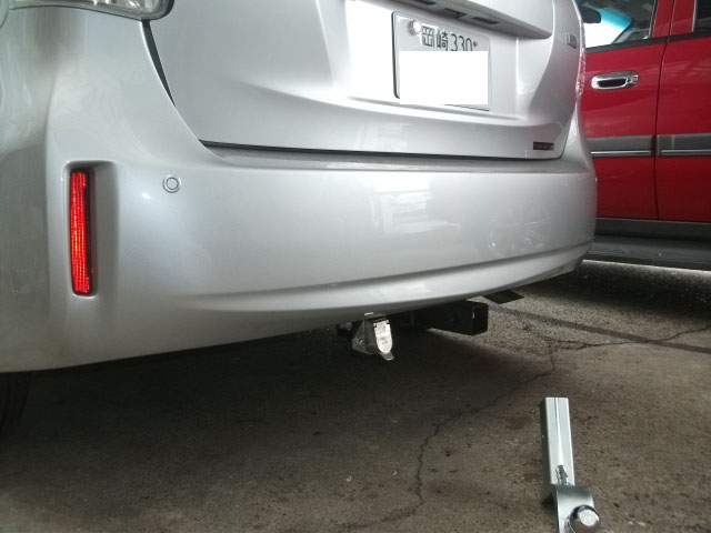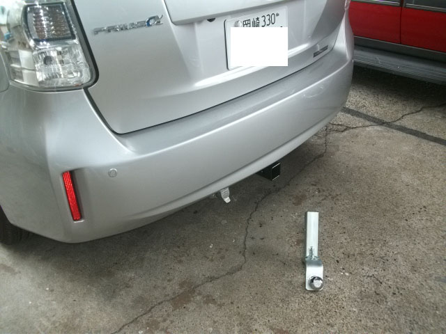 プリウスαにヒッチメンバー取付が完了しました。