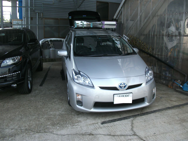 プリウス30系に重牽引の特注ヒッチメンバー取付作業を行っています。
