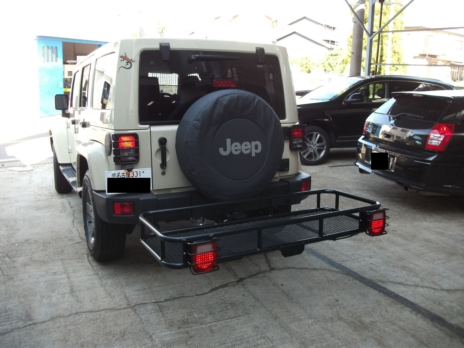 先日、取付したラングラーアンリミテッドのアメリカンヒッチ&SUNROCKY特注ヒッチキャリア