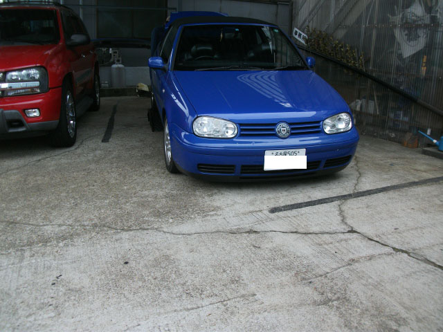 ゴルフⅢに特注ヒッチメンバーの取付作業をしています