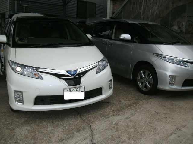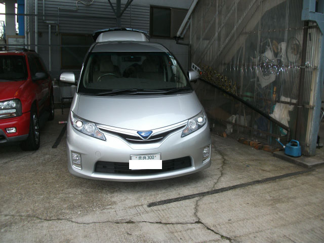 朝一番でエスティマハイブリッド AHR20Wが入庫し、ヒッチメンバー取付
