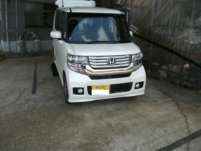 朝一番で、いつも弊社にて施工して下さいますU様が遠方よりご来社し、ホンダN-BOXに特注ヒッチメンバー取付作業