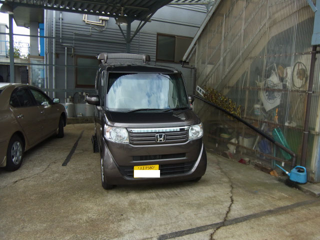 ホンダNBOXに特注ヒッチメンバー取付作業をしています。