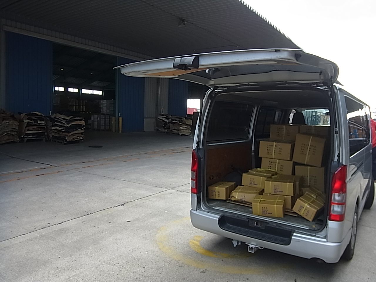 そのまま海運会社の倉庫へ引き取りに行き、積んで帰ってきました。