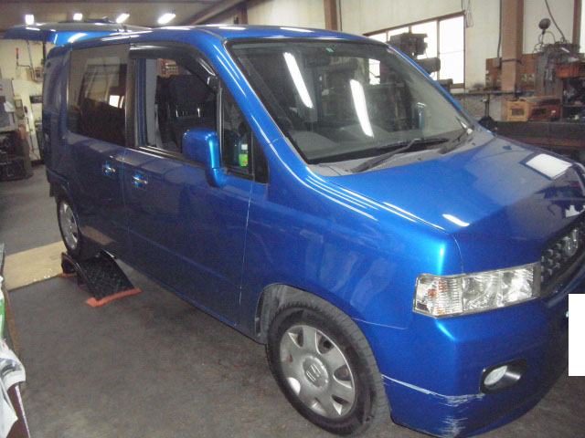 早速、今日はホンダモビリオスパイクの特注ヒッチメンバー取り付け作業をしています。