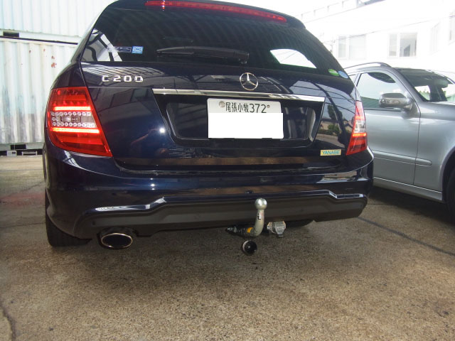 メルセデスCクラスワゴン S204にUR製ヒッチメンバー取り付け作業をしています。