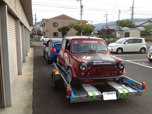 インプレッサWRXでW76車載トレーラーにローバーミニを積んでの連結画像をお客様から頂きました。