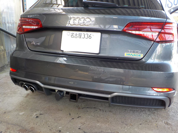 アウディA3スポーツバック が入庫し特注ヒッチメンバー製作取付しています。
