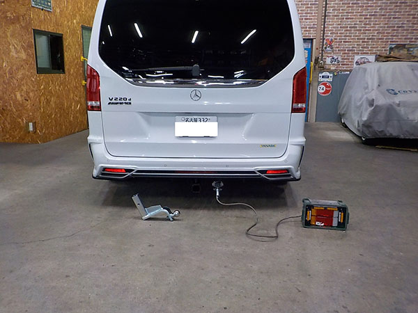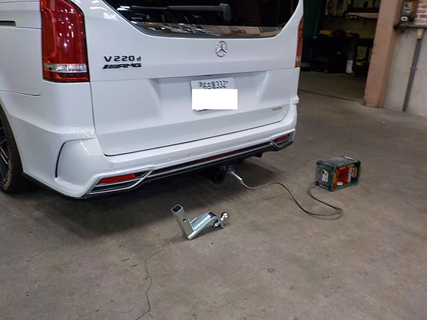 メルセデスベンツVクラス 標準ボディ に特注ヒッチメンバー製作取付しています。