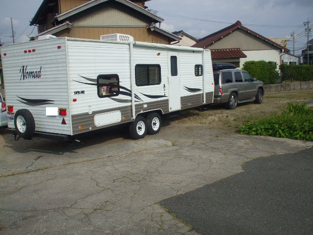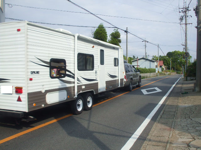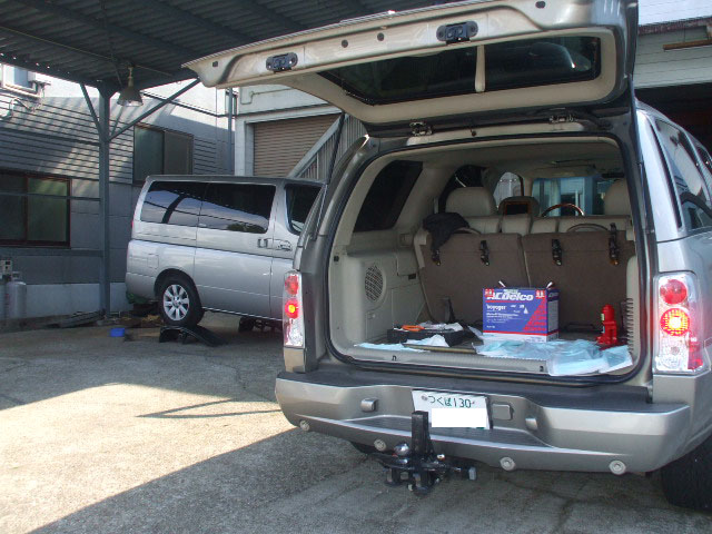 先日入荷したばかりのブレーキコントローラーTEKONSHA P3とGM専用ハーネスを付けにH様が茨城からご来社してくださいました。事前に立ち寄る所が有ったようで、ご家族とトラベルトレーラーも牽いて。