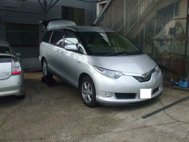 エスティマハイブリッドAHR20Wのヒッチメンバー取付を行っています。