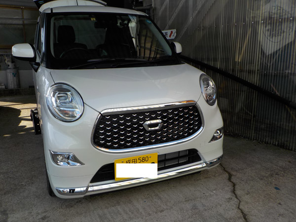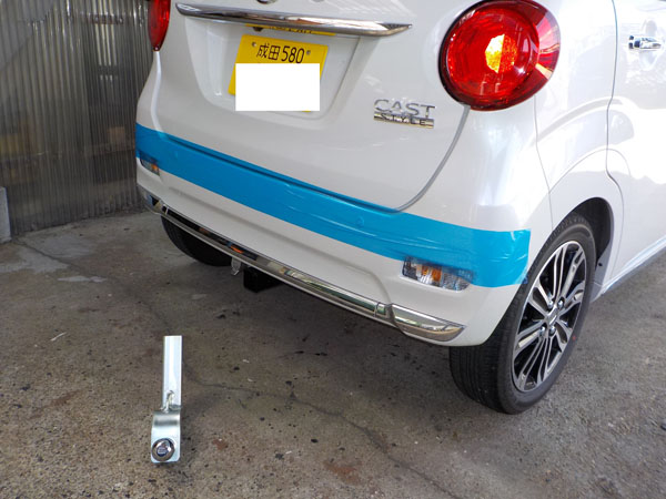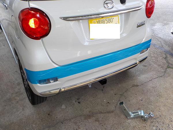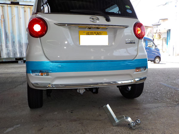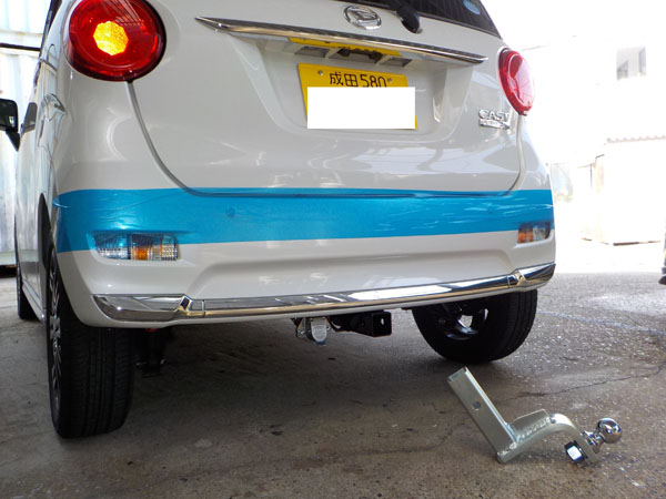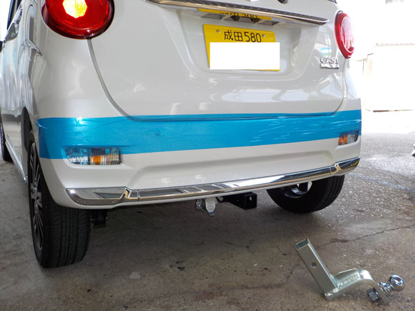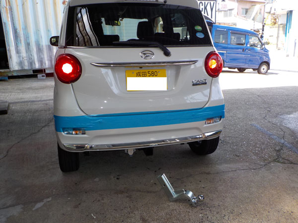 ダイハツ キャスト が入庫し、特注ヒッチメンバー製作取付しています。
