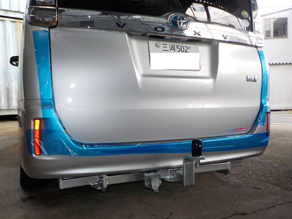 朝一番で入庫したVOXY ZWR80G にヒッチメンバー取付しました。