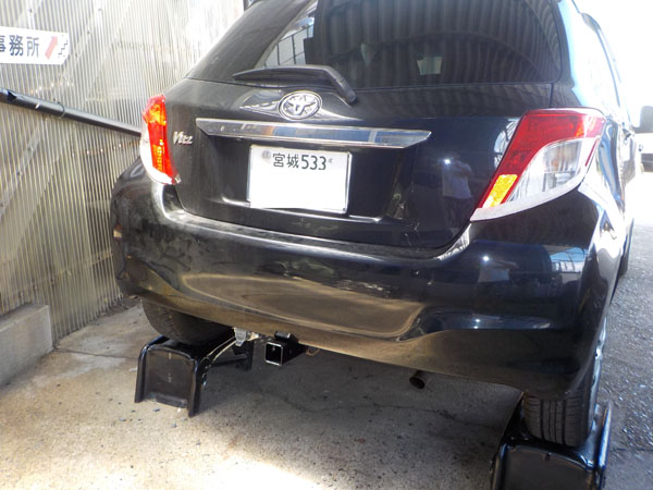 トヨタ ヴィッツNSP130が入庫し特注ヒッチメンバー製作取付しています。