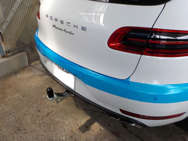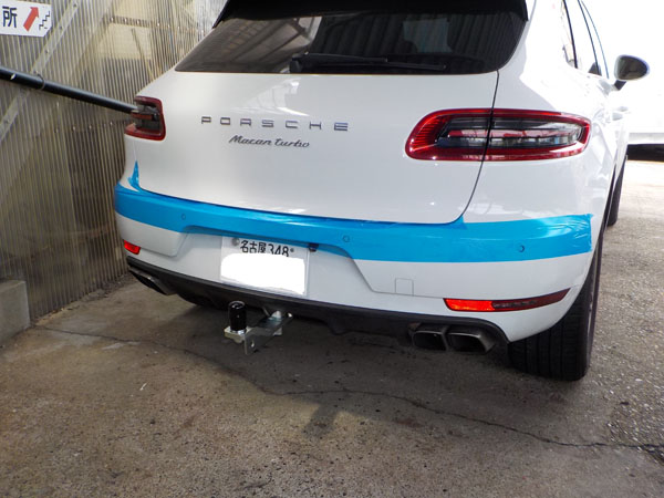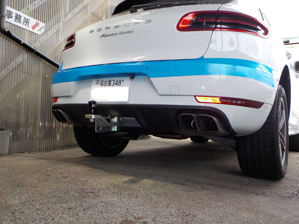 ポルシェマカン が入庫し、ヒッチメンバー取付しました。