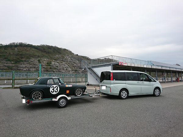 W76車載トレーラーにホンダS800を積んでサーキット走行を楽しまれております。