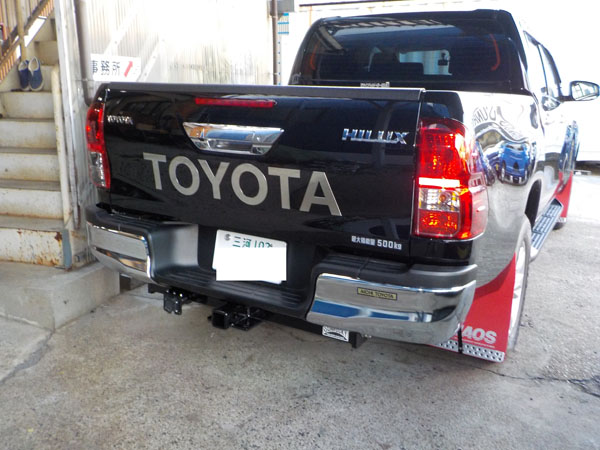ハイラックスWキャブ GUN125 に特注ヒッチメンバー取付しています。 エアストリーム トラベルトレーラー牽引2.5t 記事更新 作業完了しました。 M様、弊社にご依頼頂きまして誠にありがとうございました。 ブレーキコントローラー(前回の車両から流用) 通常付ける場所にエアバックが有り付けられず、お客様と打合せで、この場所に。 ビス留めも、メクラ蓋の所に打ったので、たぶんココがベストな位置。 http://fukushin-ind.com/ |
