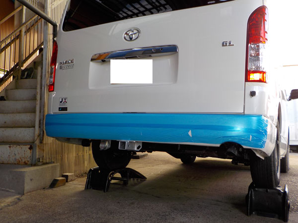 ハイエース210キャンパーが入庫しヒッチメンバー取付しました。
