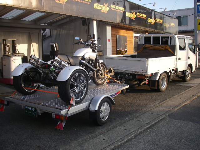 先日、ライトトレーラーで緑ナンバーを取得したメイカ物流さんが、フェネックショールーム http://www.ipc-tokai.or.jp/~fennec/ にトライクを積んで遊びに来たので、画像を頂きました。 トライクの運送を事業としてライトトレーラーを使っています。 関連記事 http://sunrocky.blog-rpg.com/Entry/143/ これからも事業のますますのご発展を祈念しております。 |