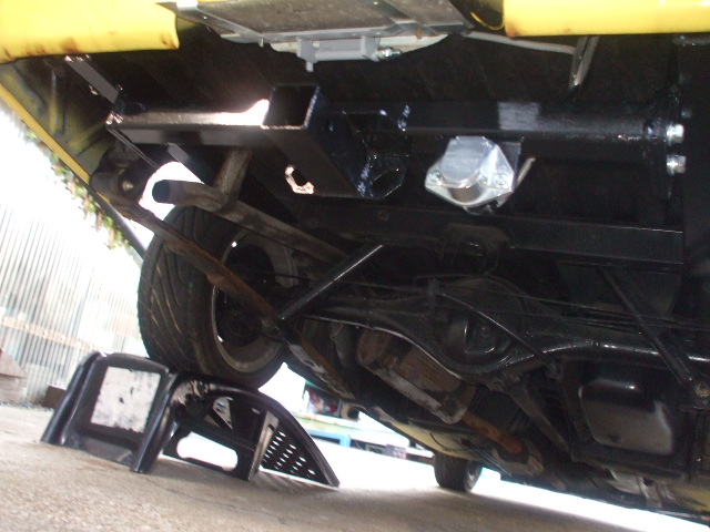 サニートラックの特注ヒッチメンバー取付作業が完了しました。