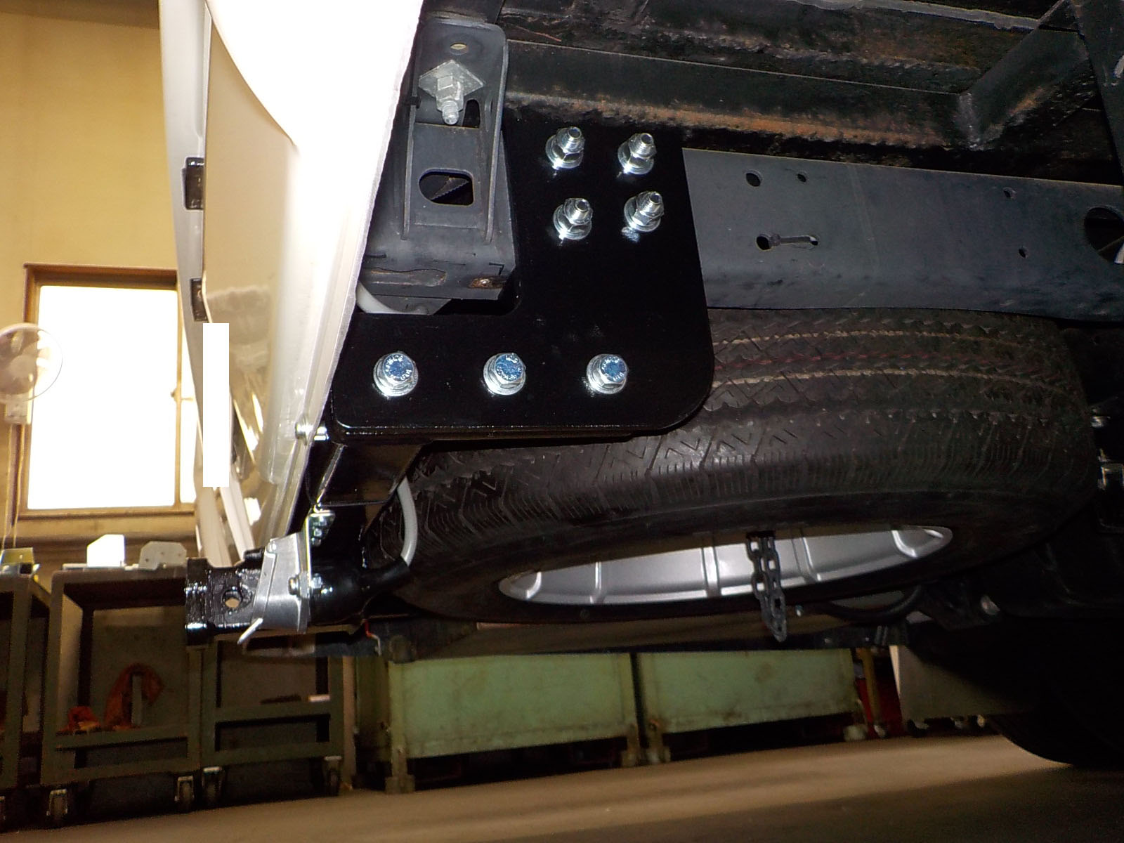 コースター キャンピングカーに特注ヒッチメンバー製作取付しています。