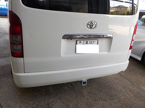 ハイエース210系にヒッチメンバー取り付けしています。