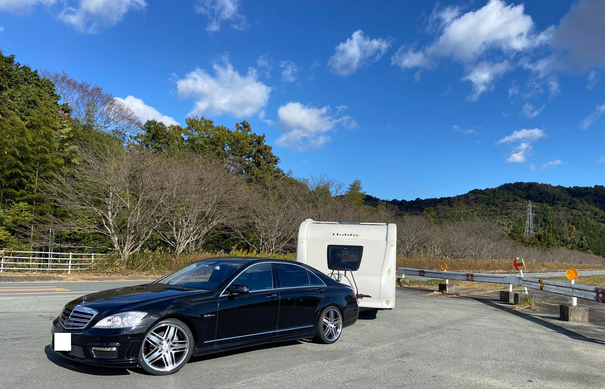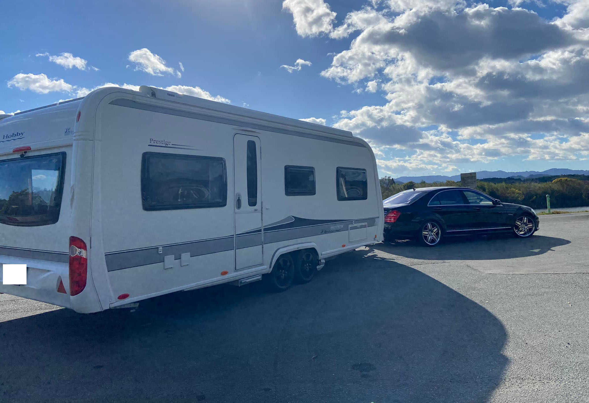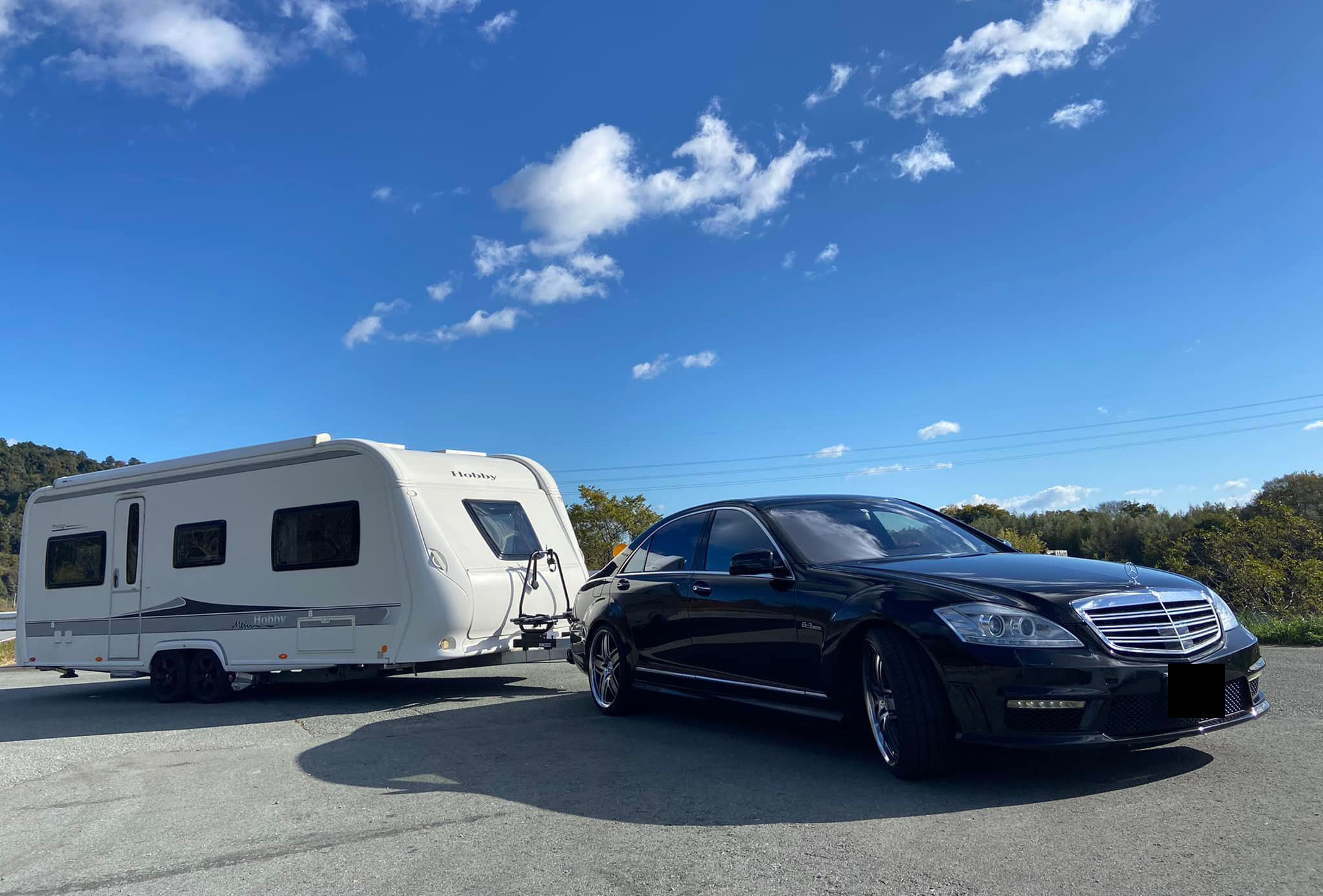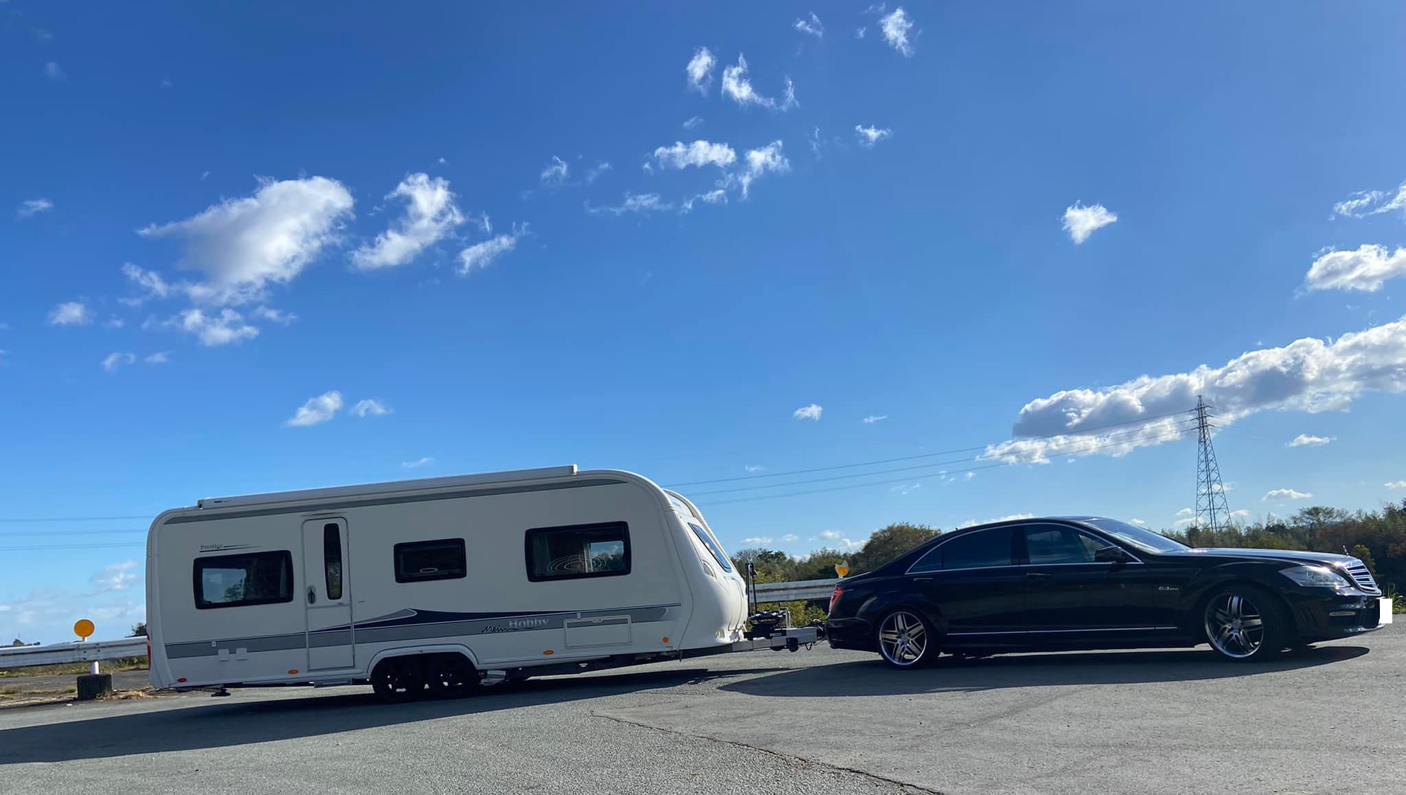 先日取付を行いましたメルセデスベンツSクラスでホビーキャラバンキャンピングトレーラー