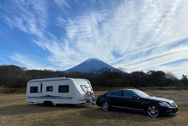 メルセデスベンツSクラスでキャンピングトレーラー