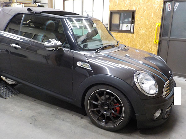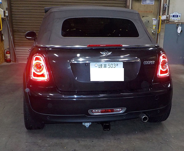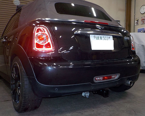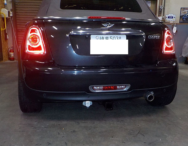 BMWミニR56コンバーチブルに特注ヒッチメンバー製作取付しています。