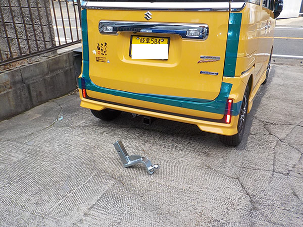 スズキ スペーシアカスタムMK53Sに特注ヒッチメンバー製作取付しています。