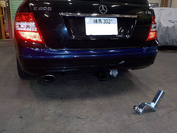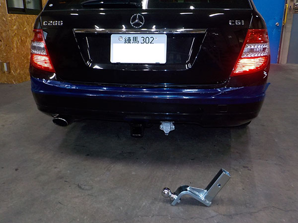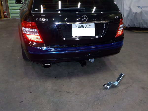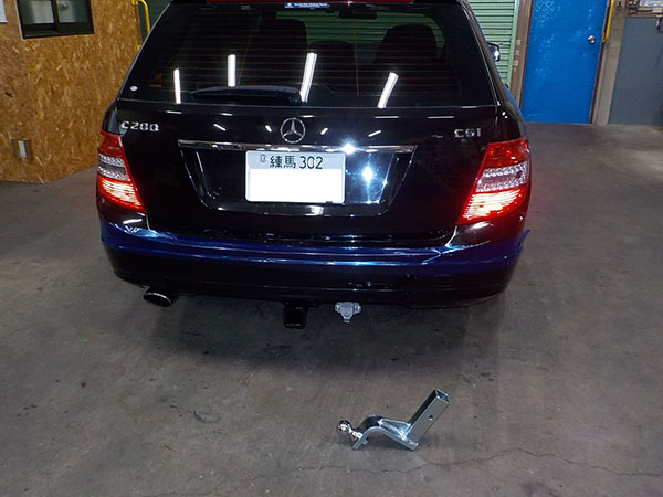 メルセデスベンツCクラスワゴンに特注ヒッチメンバー製作取付しています。
