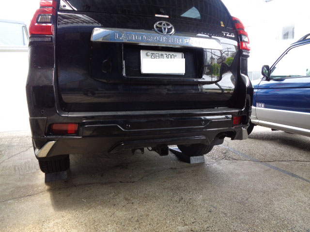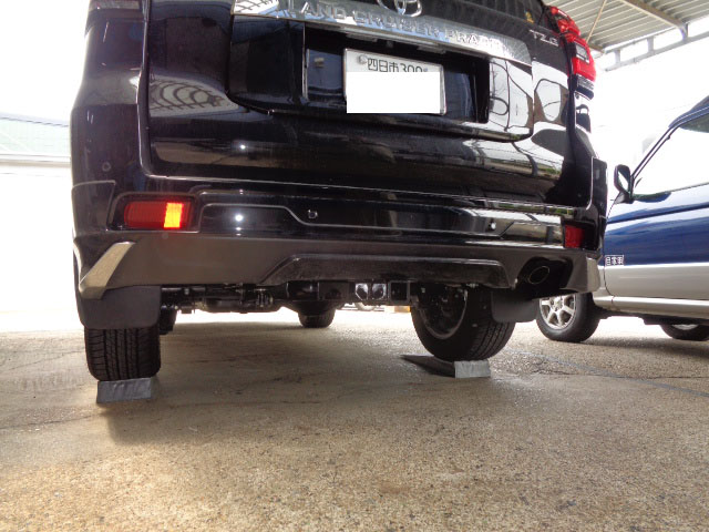 ランドクルーザープラド150 エアロ付き車両にWD対応の特注ヒッチメンバー製作取付しています。