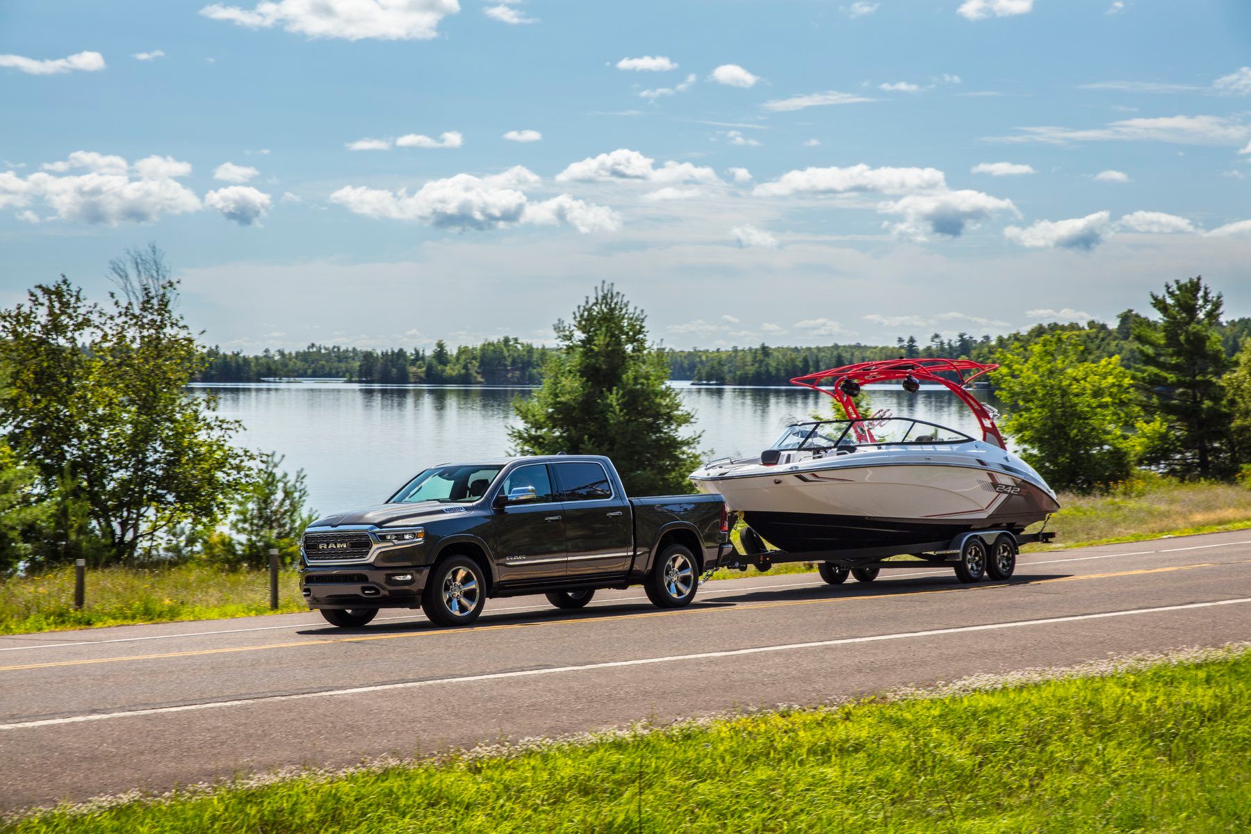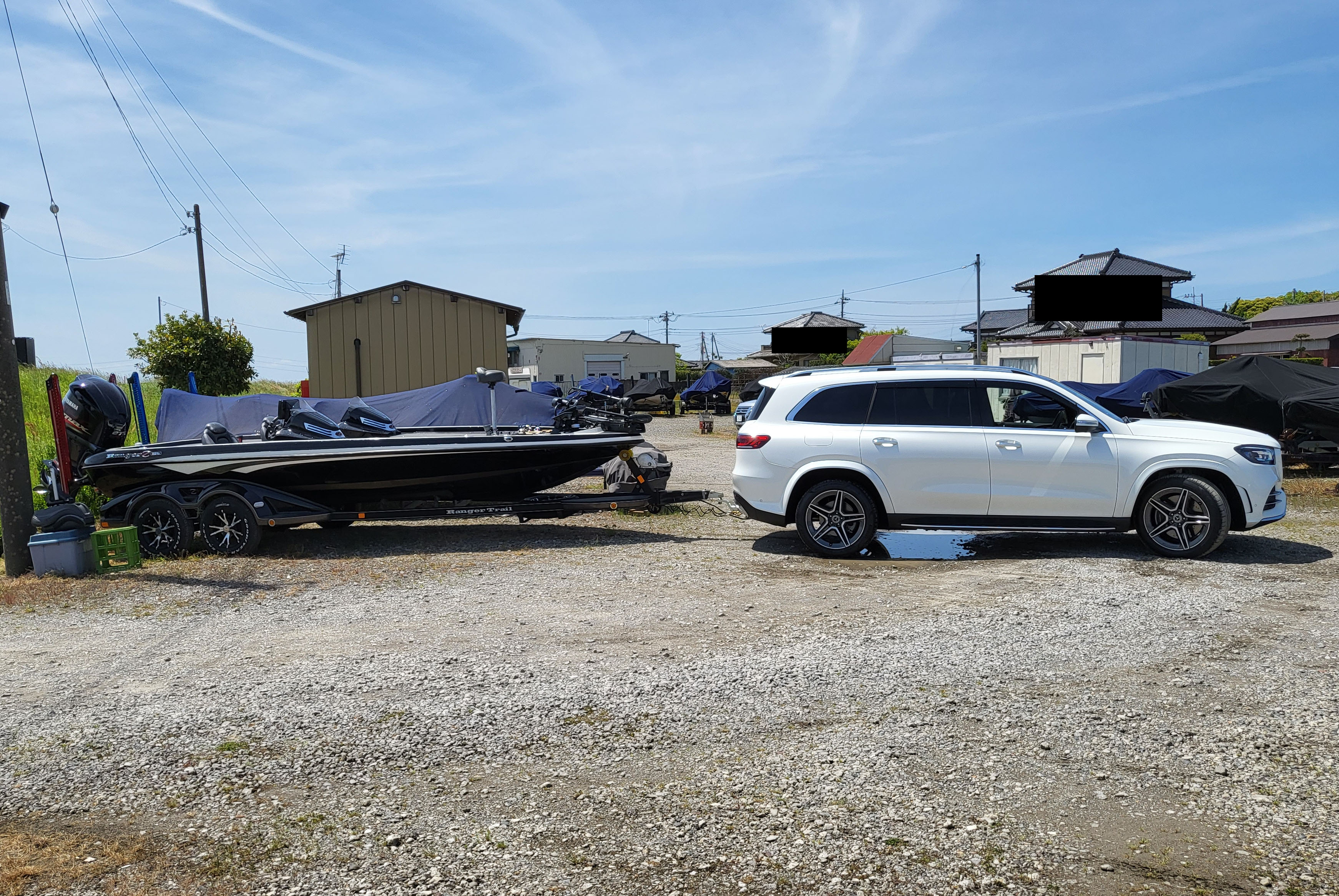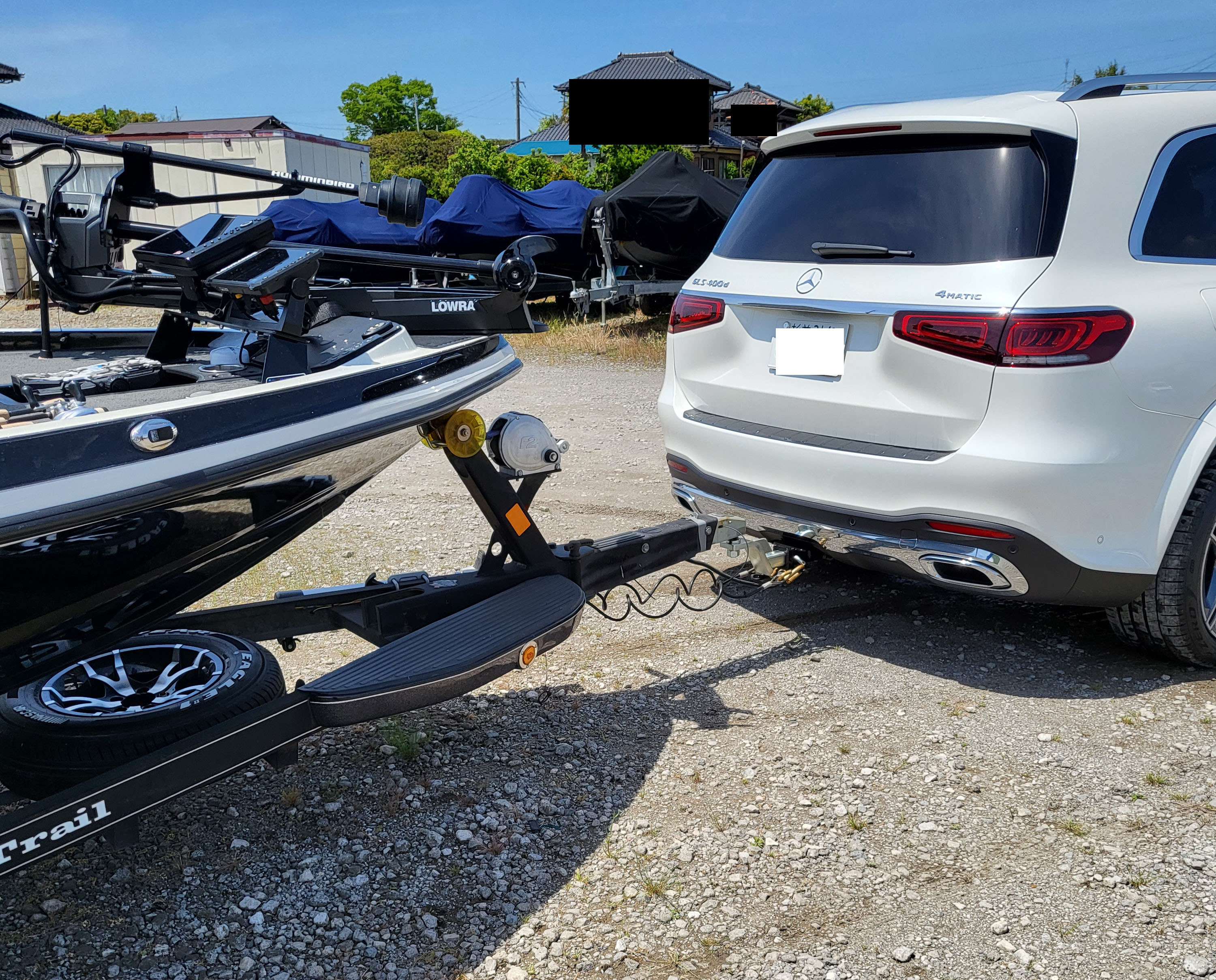 長さのあるボートトレーラーって、連結姿勢がやっぱりカッコイイですね。