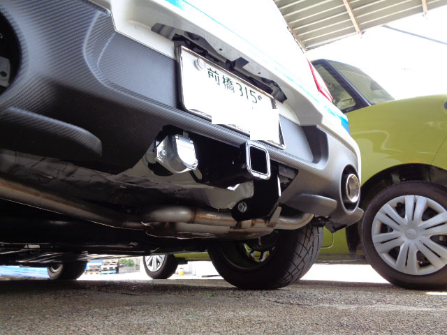 お客様との事前打ち合わせでバンパーカット、リアフォグ撤去しました。