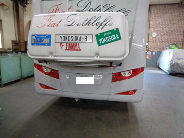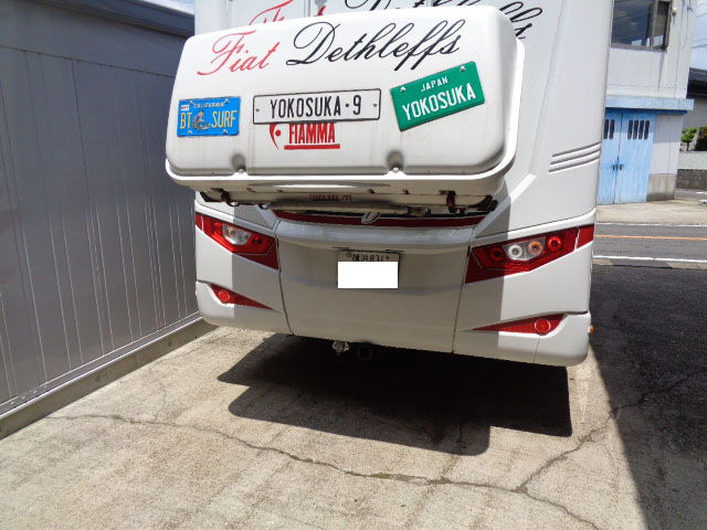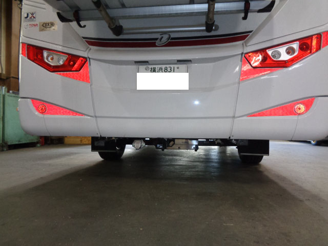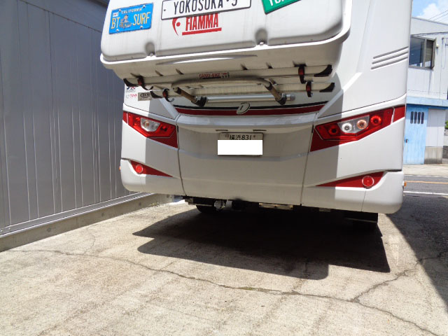 月曜から作業していたキャンピングカーの特注ヒッチメンバー製作作業が完了しました。
