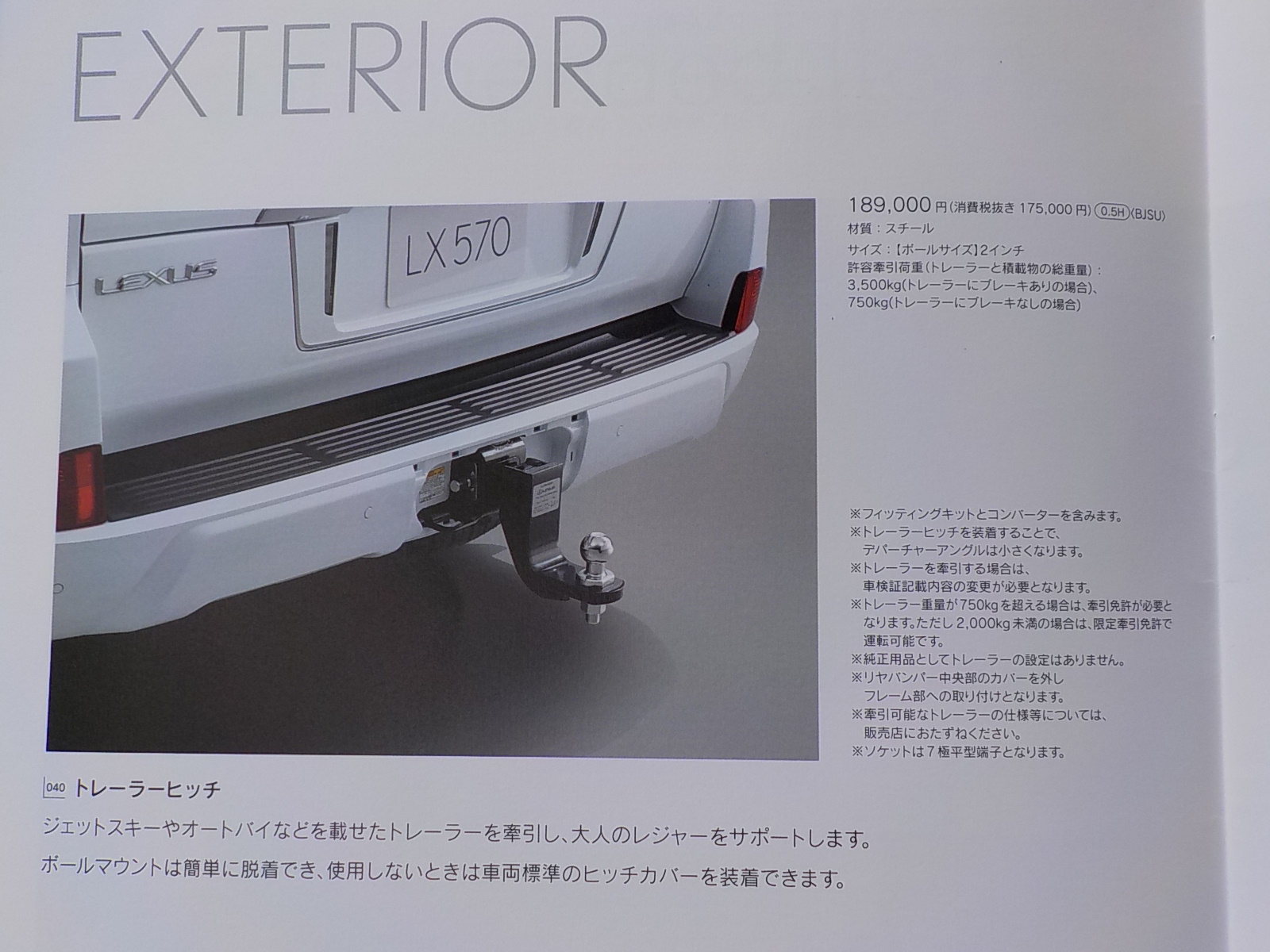 先日レクサスLXの取付をした際にお客様に見せて貰った純正オプションカタログ 牽引能力3500kg と書かれているけど、このヒッチボールどう見ても3/4インチシャフトだよね。 と言う事は通常3500LBS(1589kg) 車体とマウントは見た目3.5t大丈夫そう。 それと気になった点。 ソケットは7極平型端子となります。 の記述 以前ランクル200で純正を付けたお客様がトレーラーと規格が合わないと、コンセント交換に来ました。 レクサスLX純正も、たぶんこれが付いてる。 このピン配置で連結し正常に点灯可能なトレーラーを私は知らない。 同じ形状の牽引車側コンセントはアメリカ規格のUS7pin。 ウインカーとブレーキが同じ赤の点滅のタイプで、ACCプラスと、ブレーキコントロールが入っている。 燈色方向指示器の無いタイプ。 当然並行輸入のアメリカントレーラーとランクルを連結しても正常には点灯しない。