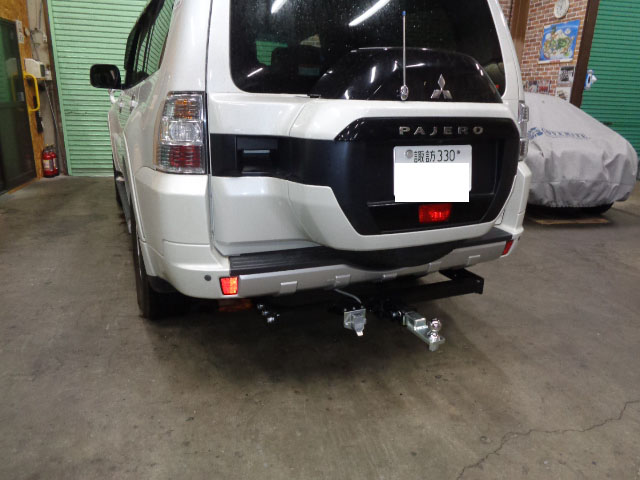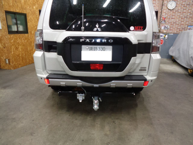 三菱パジェロV98Wにヒッチメンバー取り付けしています。