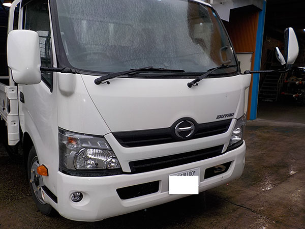日野デュトロに特注ヒッチメンバー製作取付しています。