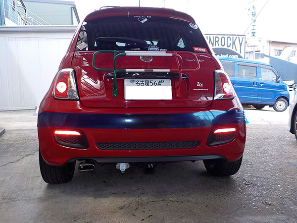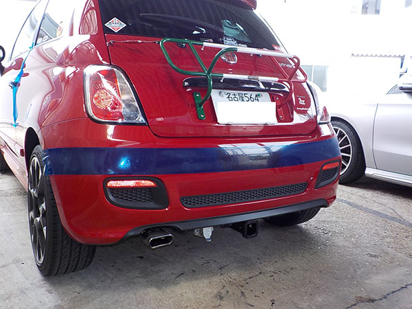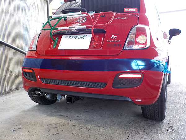 フィアット500に特注ヒッチメンバー製作取付しています。