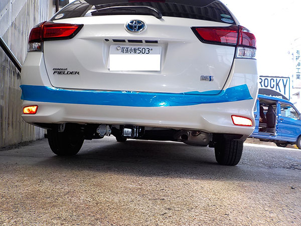 カローラフィールダー165Gに特注ヒッチメンバー製作取付しています。