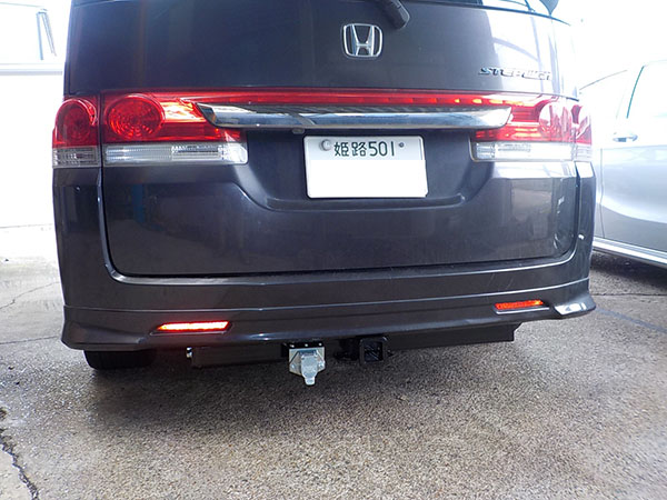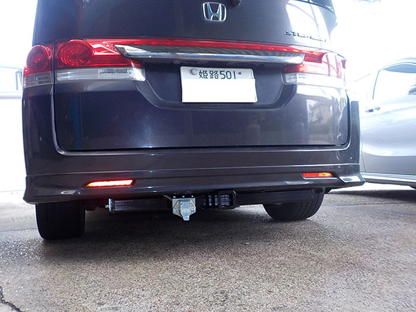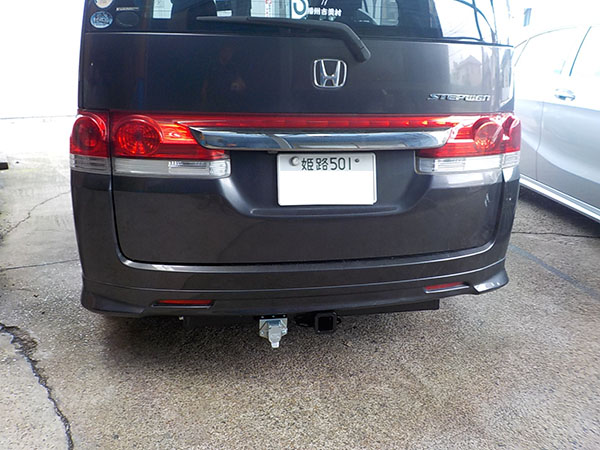 車載トレーラーユーザー様のホンダステップワゴンRGに特注ヒッチメンバー製作取付しています。