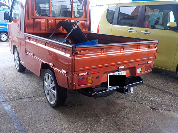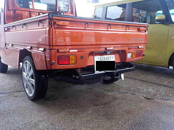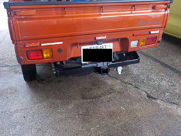ダイハツハイゼットトラックに特注ヒッチメンバー製作取付しています。