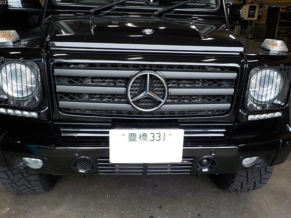 メルセデスベンツGクラスのヒッチメンバー作業しています。