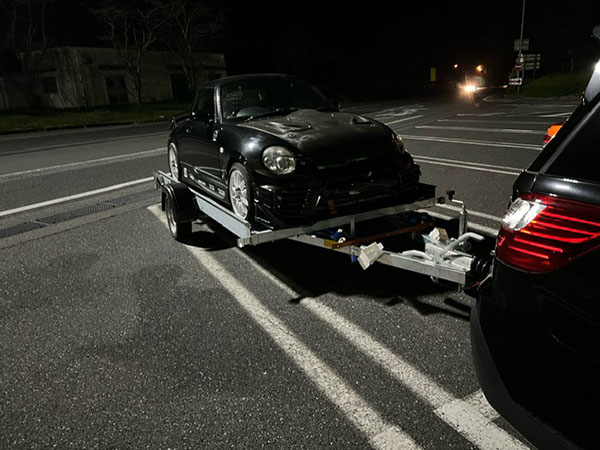 フロントスポイラーがとても低いので、積み込みの際にはバンパを外されたそうです。