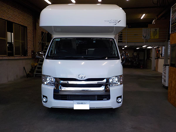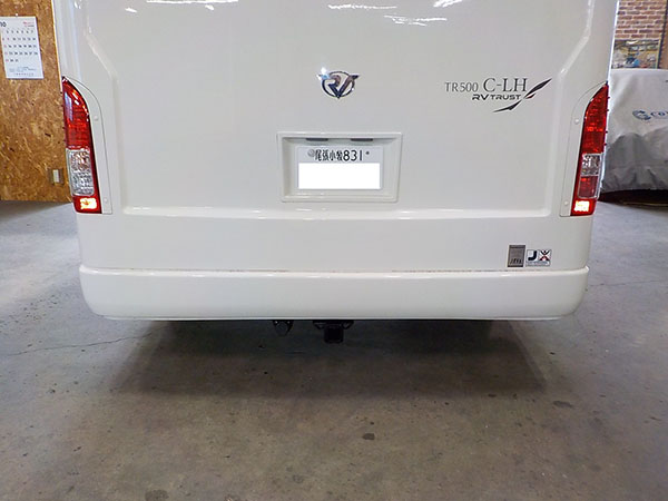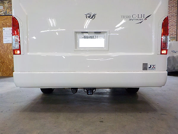 ハイエース キャブコンに特注ヒッチメンバー製作取付しています。