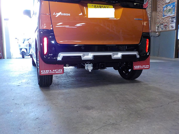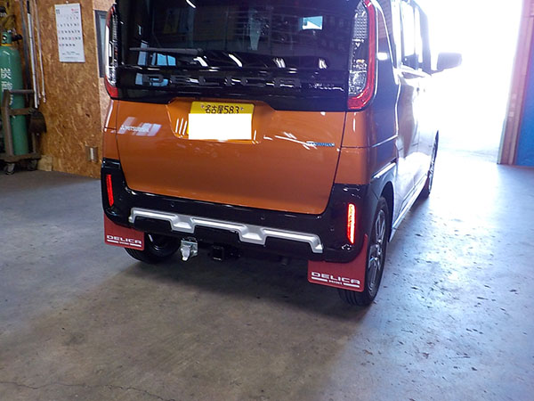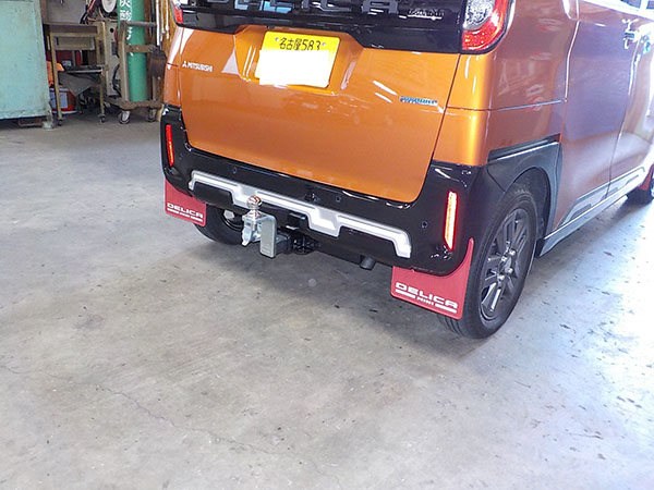 三菱デリカミニ HXTTZZ 4WDハイブリッド に特注ヒッチメンバー製作取付しています。