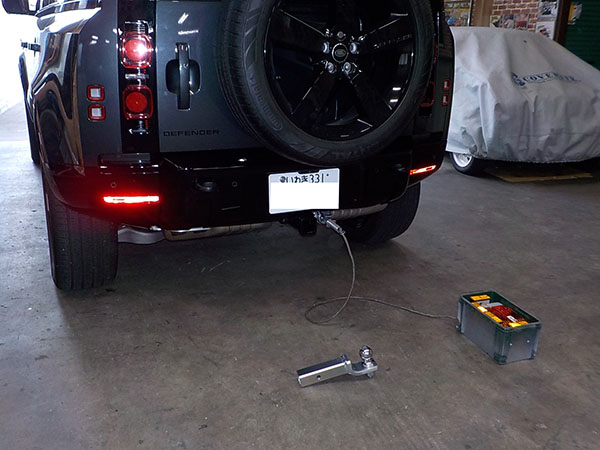 ランドローバー ディフェンダー110に特注ヒッチメンバー製作取付しています。