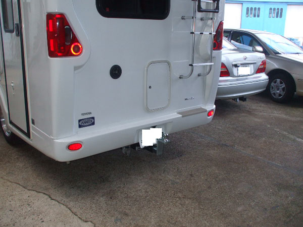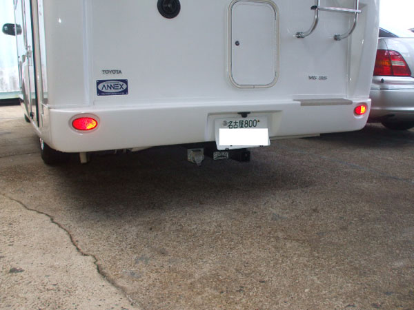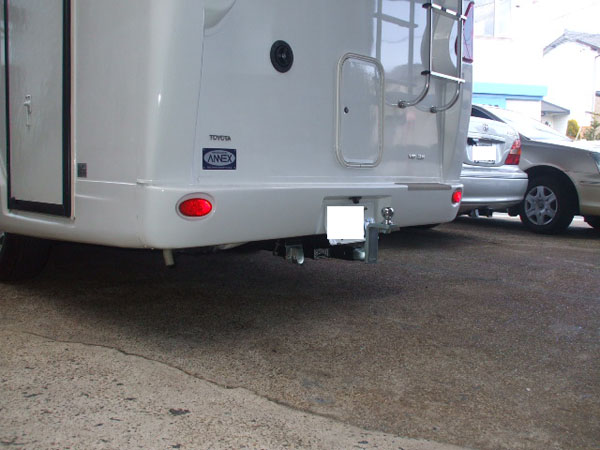 グランビアキャンパーに特注ヒッチメンバーの取付が完了しました。