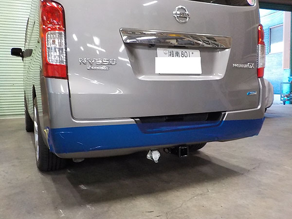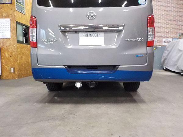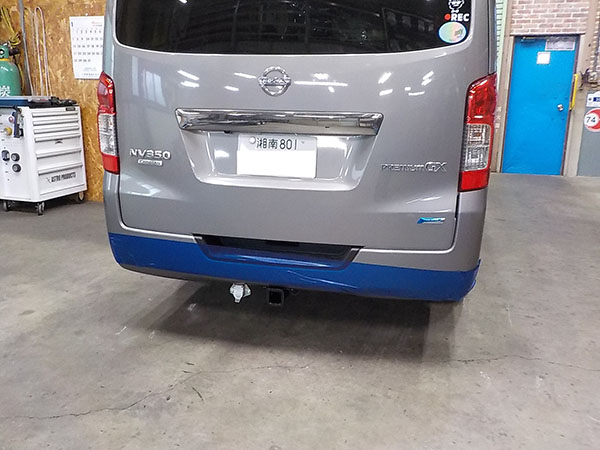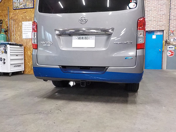 日産NV350にヒッチメンバー取り付けしています。
