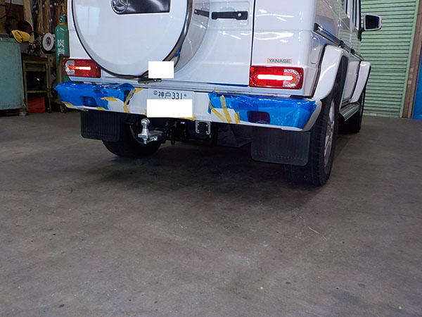 メルセデスベンツGクラスに特注ヒッチメンバー製作取付しています。